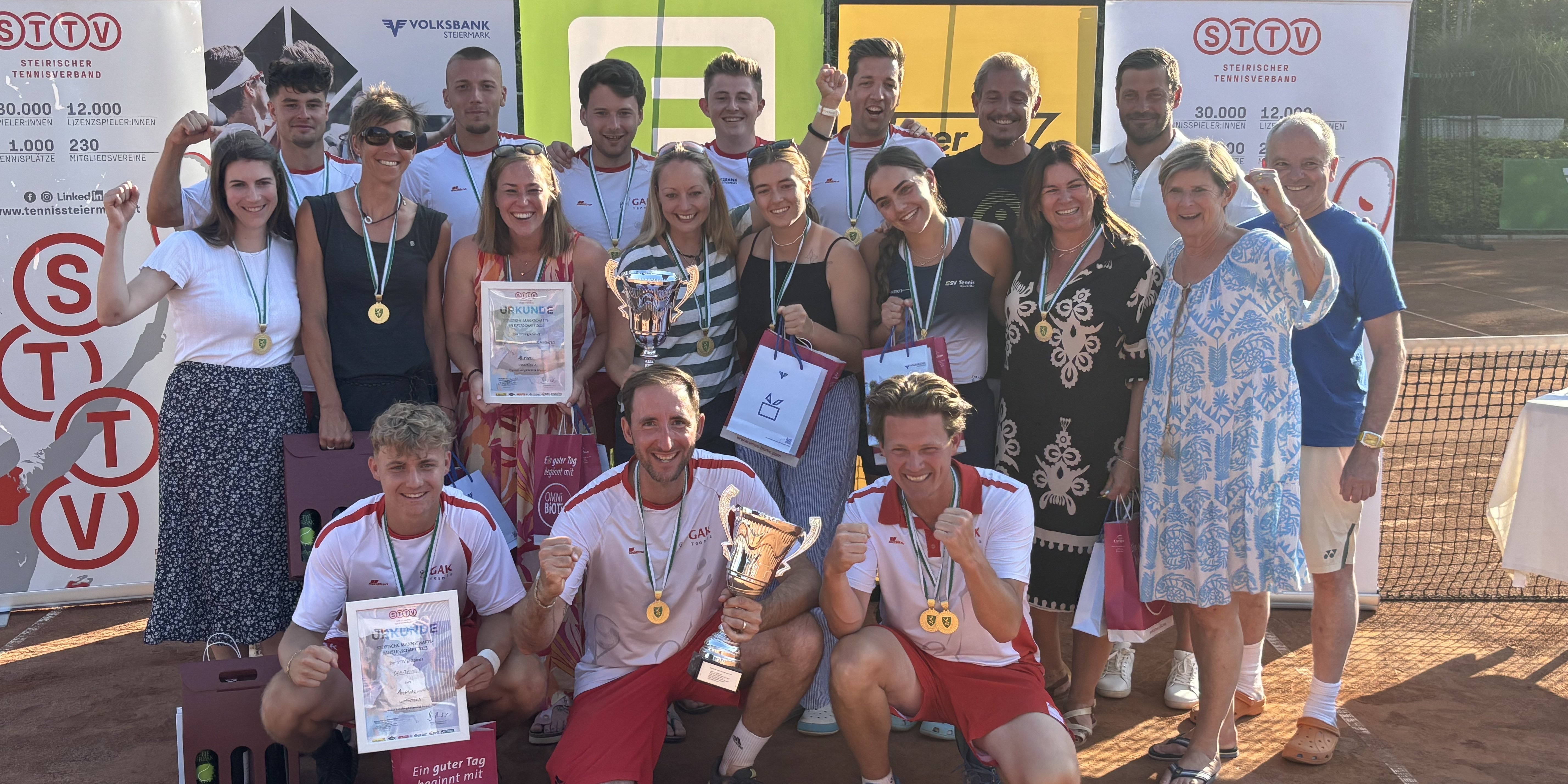 Die Königsklasse der Steirischen Mannschaftsmeisterschaften erreichte am vergangenen Wochenende mit dem Final Four ihren Höhepunkt. Von über 600 Mannschaften qualifizierten sich die besten vier Damen- und Herrenmannschaften für das große Saisonfinale, das heuer auf der Anlage des GAK-Tennis stattfand. Bei traumhaftem Kaiserwetter und perfekter Organisation wurde den zahlreichen Zuschauer:innen ein wahres Tennisfest geboten.