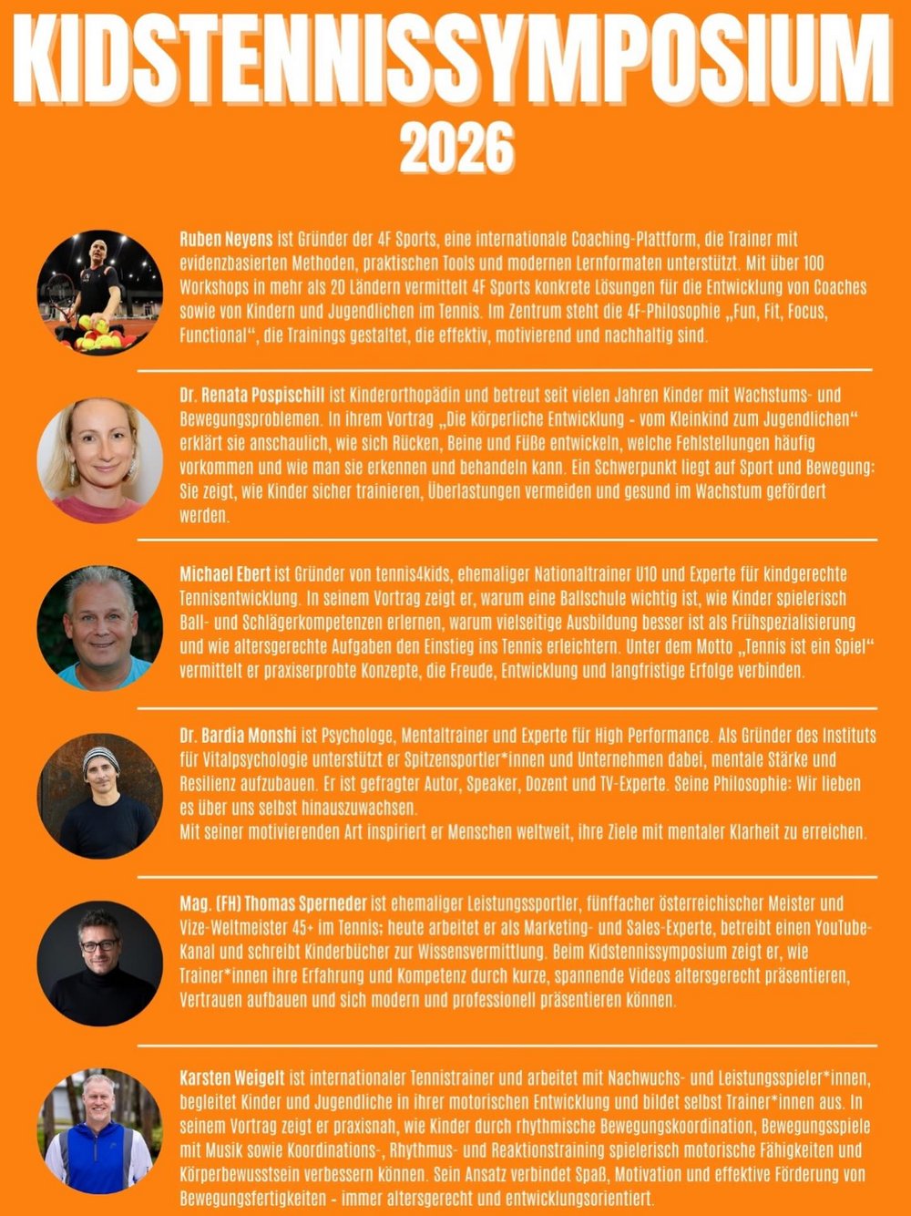 Das Kidstennissymposium 2026 findet erneut bei Tennis Weber in Schwechat-Rannersdorf statt und ist Österreichs größte Fachveranstaltung für Kinder- und Jugendtennis. In enger Kooperation mit dem Österreichischen Tennisverband ist es ein fixer Bestandteil des Ausbildungskalenders und ergänzt – gemeinsam mit der Herbstweiterbildung in Salzburg/Rif – die professionelle Ausbildungslandschaft für Coaches im Kinderbereich.